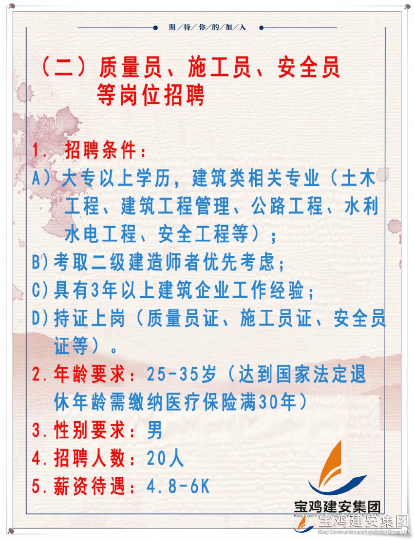 寶雞建安集團(tuán)股份有限公司2019年招聘火熱進(jìn)行中......