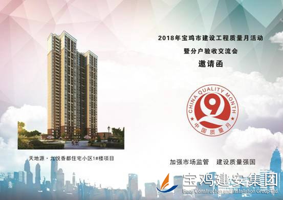 每年的九月是全國“質(zhì)量月”,今年的九月是全國第41個質(zhì)量月,為提高寶雞市住宅工程質(zhì)量標準,給消費者營造一個放心、舒心、安心的居住環(huán)境。2018年10月10日至11日在寶雞建安集團股份有限公司第十一項目部承建的“天地源?九悅香都住宅小區(qū)1#樓項目”成功舉行了2018年寶雞市建設工程質(zhì)量月活動暨分戶驗收交流會。