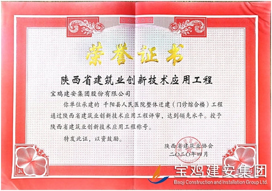 20204月,陜西省建筑業(yè)協(xié)會(huì)組織召開(kāi)了2020年上半年陜西省建設(shè)新技術(shù)示范工程評(píng)審會(huì)議,由我公司承建的千陽(yáng)縣人民醫(yī)院整體遷建(門(mén)診綜合樓)工程以?xún)?yōu)異的成績(jī)通過(guò)評(píng)審,且推廣應(yīng)用新技術(shù)總體水平都達(dá)到省內(nèi)領(lǐng)先水平。