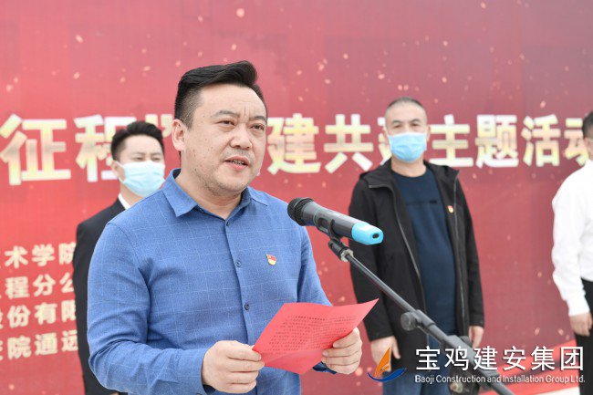 李軍鋒代表參建單位團(tuán)組織作表態(tài)發(fā)言,提出青年是時代的希望,共青團(tuán)員和廣大青年前赴后繼、勇當(dāng)先鋒,書寫了中國青年運(yùn)動的華章。參建單位將以本次黨建帶動團(tuán)建為契入點(diǎn),充分發(fā)揮引領(lǐng)作用,帶領(lǐng)廣大青年職工砥礪奮進(jìn),大道遠(yuǎn)行,以項(xiàng)目建設(shè)發(fā)展為目標(biāo),高質(zhì)量、高標(biāo)準(zhǔn)、高要求完成陜西交通職業(yè)技術(shù)學(xué)院通遠(yuǎn)校區(qū)建設(shè)任務(wù)。