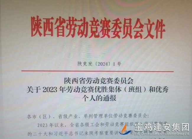 十一分公司南關(guān)路城市綜合體項目部榮獲“2023年度陜西省勞動競賽優(yōu)勝班組”稱號