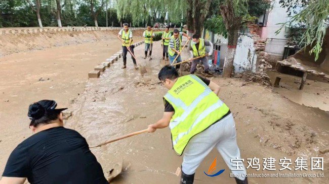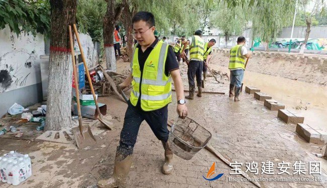 在這場沒有硝煙的災后重建狙擊戰(zhàn)中,寶雞建安集團19日接到市、區(qū)兩級住建部門的通知后,第一時間就成立了由公司主要領導牽頭的清淤搶險小組。奔赴一線的志愿號召一經發(fā)出,60多位熱血青年熱烈響應,大家踴躍報名、積極參與,迅速組建起隊伍,截至目前,已連續(xù)投入高強度勞作達四個工作日。