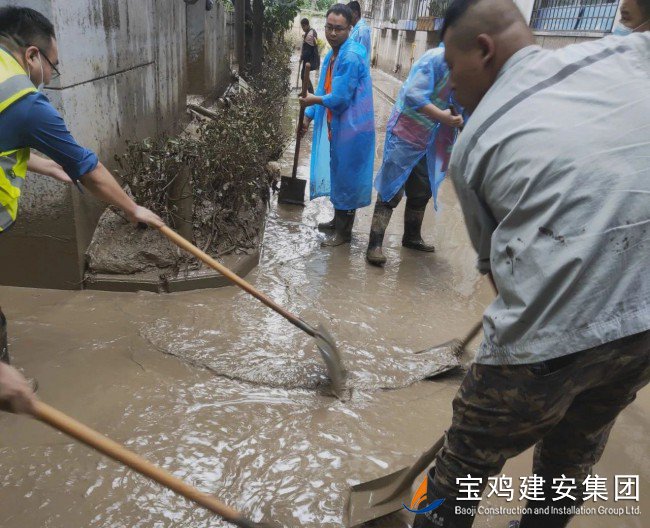 災(zāi)情來臨,義無反顧;災(zāi)后清淤,勇挑重?fù)?dān)?!昂樗淹?,我們不退”,寶雞建安集團(tuán)洪災(zāi)重建小分隊(duì)逆行風(fēng)雨中,以實(shí)際行動(dòng)踐行錚錚誓言,在重建家園的大愛隊(duì)伍中,為渭濱區(qū)一方群眾筑牢了一道安全堤壩!