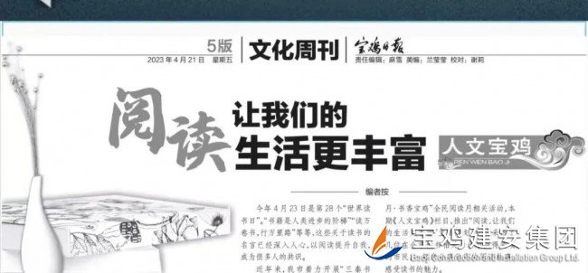 編者按:在第28個(gè)世界讀書日到來之際,《寶雞日?qǐng)?bào)》社策劃了讀書專版,鑒于寶雞建安集團(tuán)長期堅(jiān)持舉辦的“書香企業(yè)”征文活動(dòng)在社會(huì)上廣受好評(píng),記者來電提出采訪意向,公司工會(huì)極力舉薦了來自基層一線熱愛閱讀并多次參與讀書征文的技術(shù)人員張振東同志。421日,《寶雞日?qǐng)?bào)》發(fā)表了這篇小專訪,現(xiàn)予轉(zhuǎn)發(fā),以饗廣大員工。