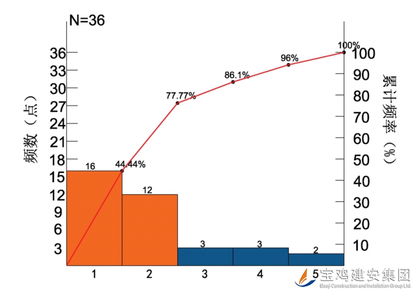 在科學(xué)技術(shù)高速發(fā)展的今天,統(tǒng)計方法在潛移默化中得到了日益廣泛和深入的應(yīng)用。技術(shù)管理過程中應(yīng)用科學(xué)的統(tǒng)計方法排列圖法,提高投標(biāo)施工組織設(shè)計審核合格率。見下圖: